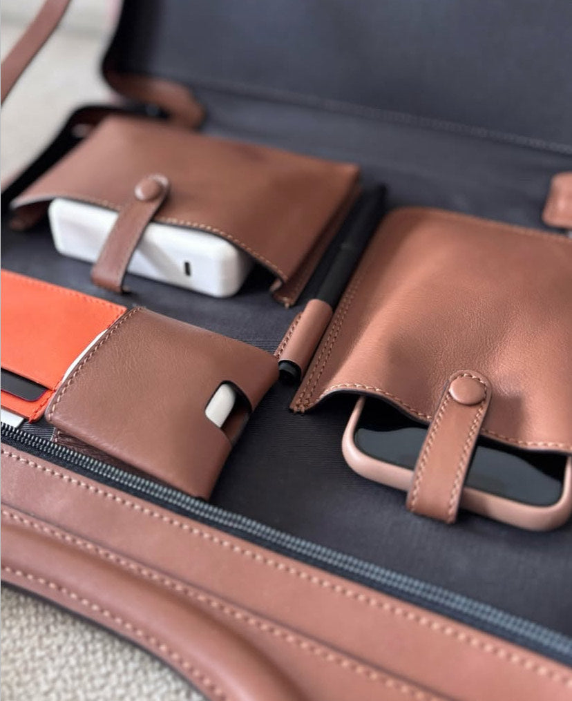Une poche zippée au dos complète ce design sobre et réfléchi. Chaque couture, chaque texture évoque l’exigence dédiée aux personnes qui veulent conjuguer esthétisme et organisation dans leur quotidien mobile.